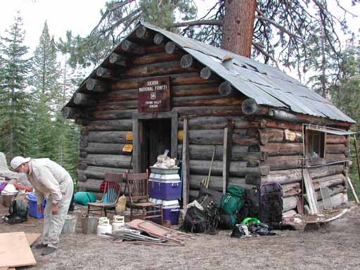 Another view of the left hand far corner from near the right side near the door. Note the nice table and all the cards on the beam. Many of the previous people here left their cards. We left a short note saying that the six of us were here including the date and saying that we were from the High Sierra Volunteer Trail Crew.