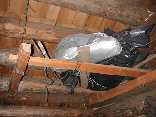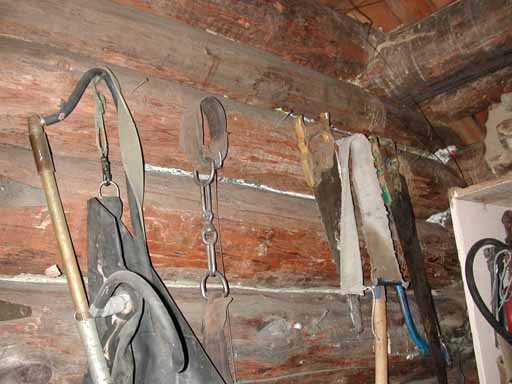 More tools behind the door and the top of the wood burning stove, that wasn't installed and thus unusable.
