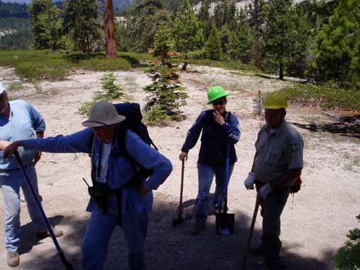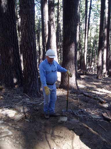 Our work tools. McLeod's on the back left, industrial strength come along in the middle back, loppers, diesel fuel for cleaning saws, rock bar and