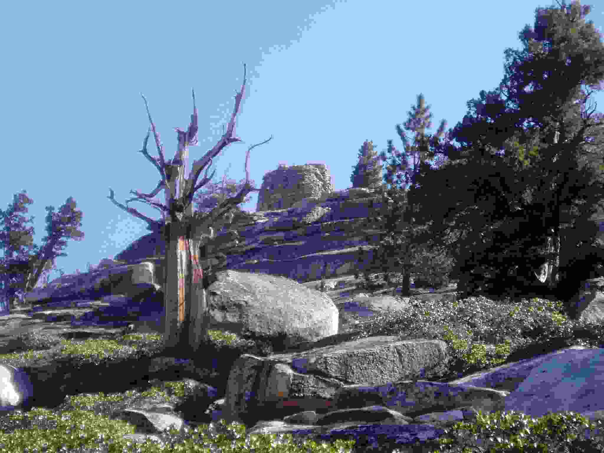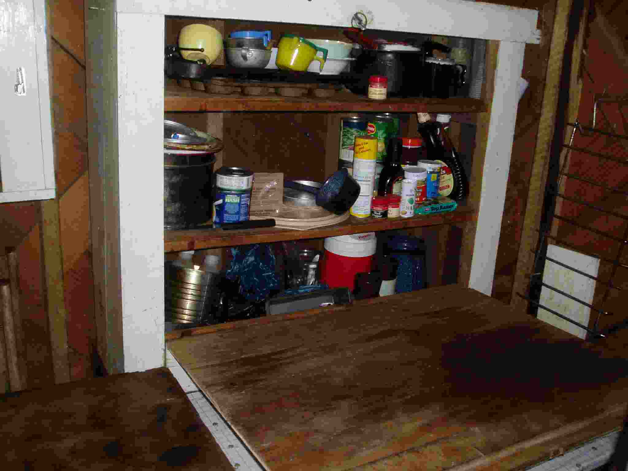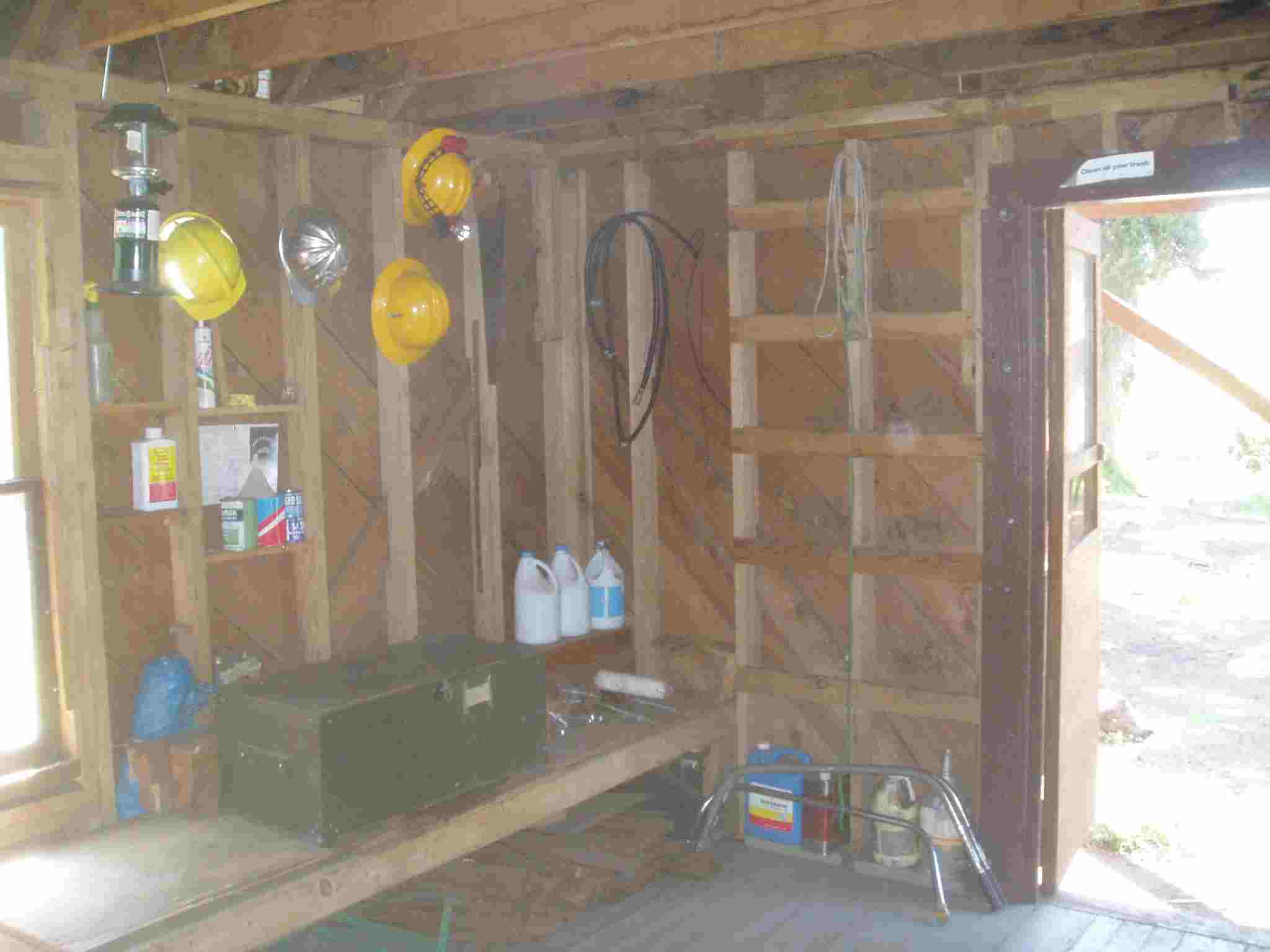 Kitchen area, first morning. (Friday) Today my task is to get a crew of all first timers and go to Rowell Meadow where the week long team has been working. They have left two "problem" trees for us, and some minor additional work. When they get packed out, they will be leaving a rock bar and two man crosscut saw behind for us.