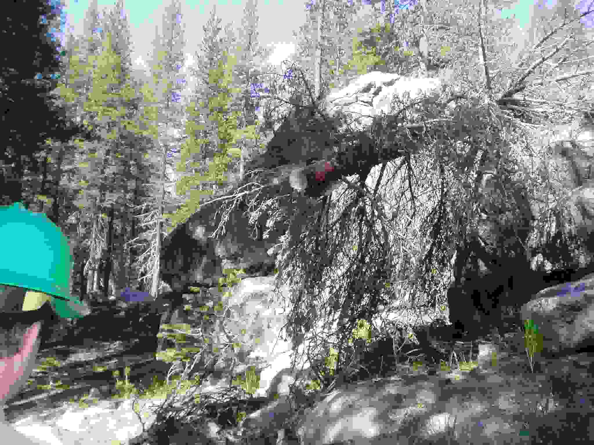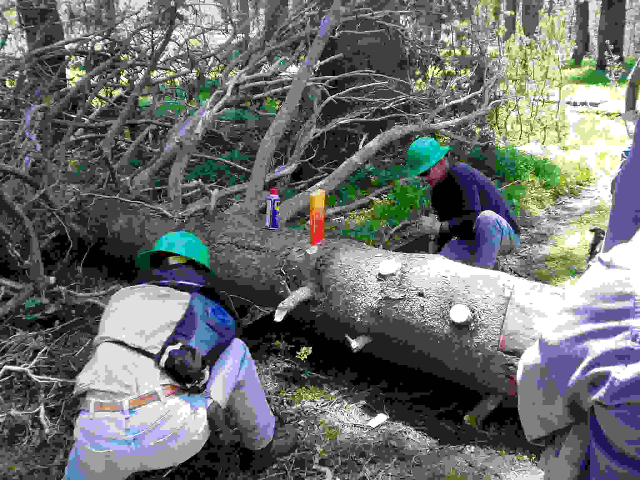 More branch removal. Note the old Forest Service "blazes" on the tree on the right. The Forest Service used an "i" (lower case i) blaze. In areas where the US Calvary were they used a "T" blaze.