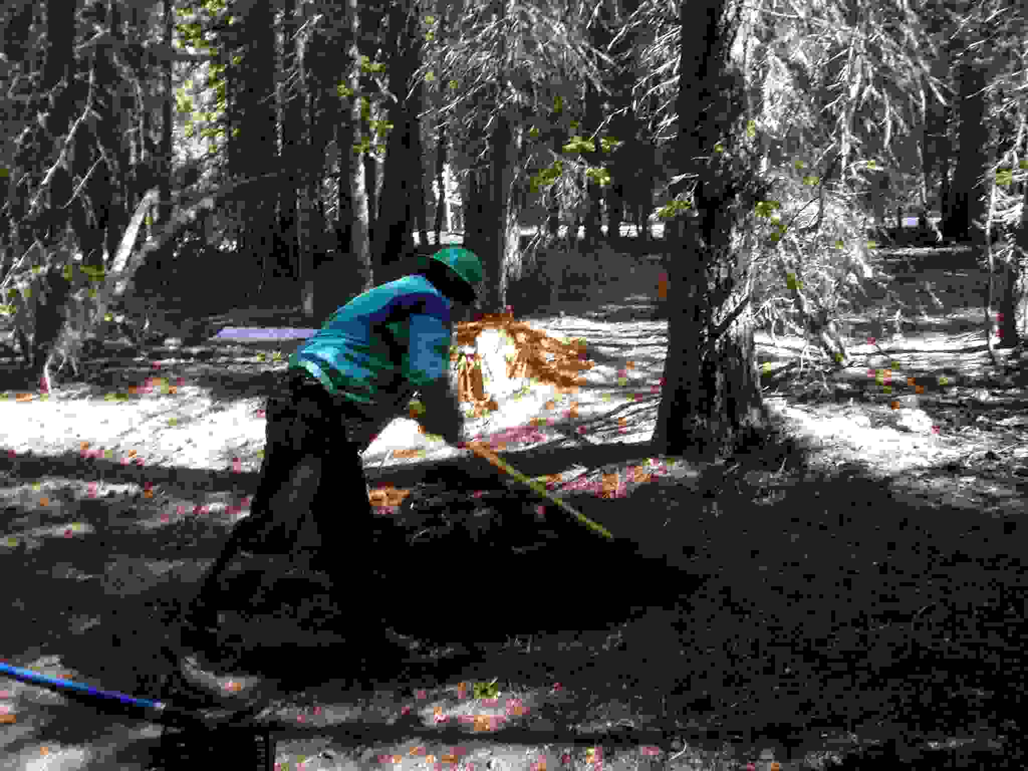 Keith using a McLeod to get a bear box position ready.