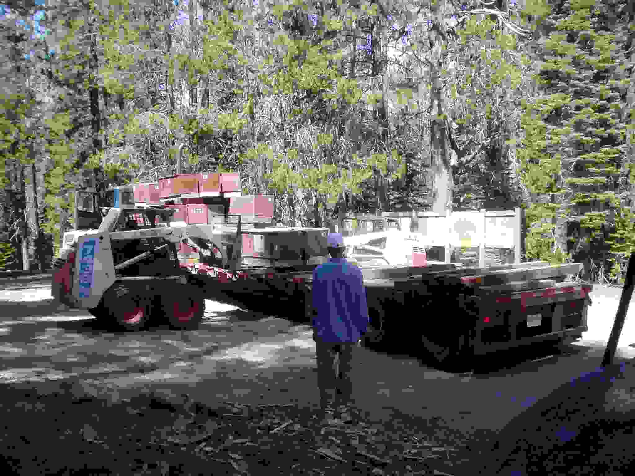 Unloading bear boxes at the camp area.