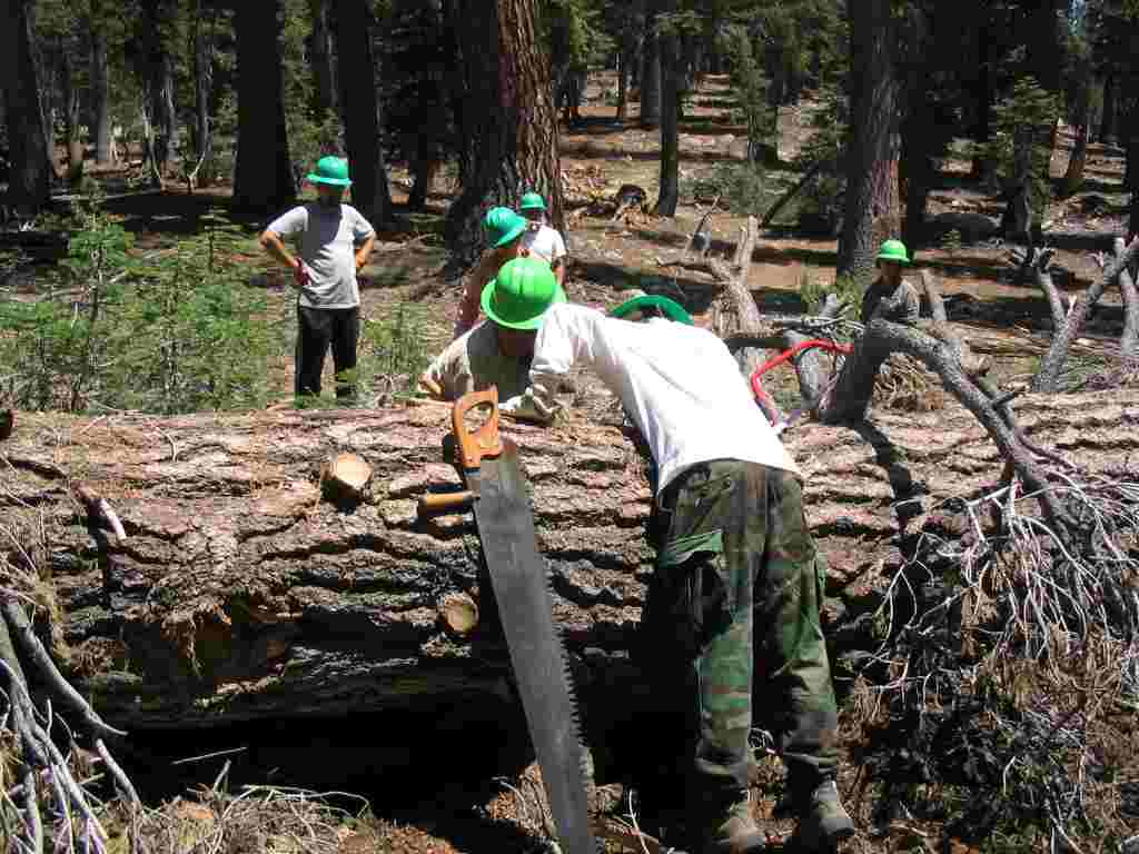 Leah's team entering the wilderness area with two man crosscut saw.