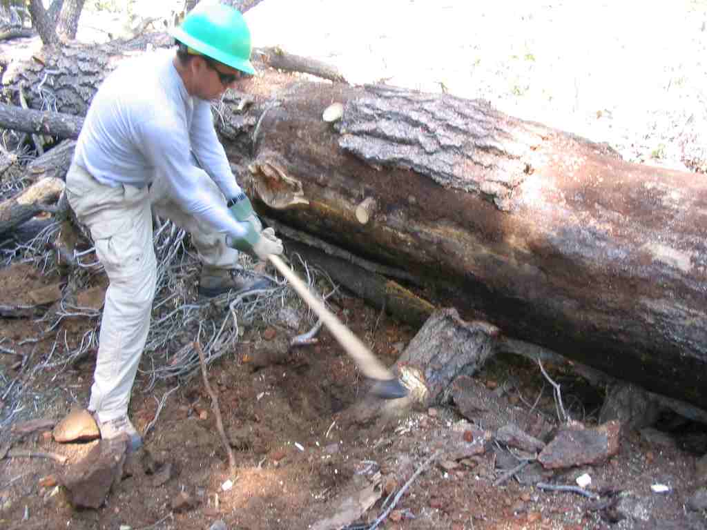 Using a Pulaski to chop out the staube.