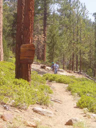 Wilderness boundary sign with Laura and Dave in the background. I try to take a picture of the various signs that I pass, so that some idea of the time that we are working may be obtained. With each picture there is a time-tag and by subtracting them, we can get an idea of how long we were on the trail.