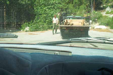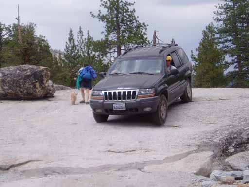 Adrian's Jeep leaving from the parking area of Bear Creek