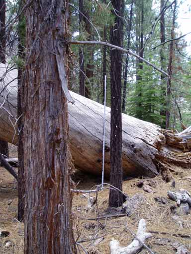 Looking back at the leaner and the cleaned up trail where we removed an 18" tree.