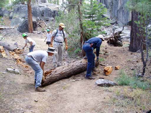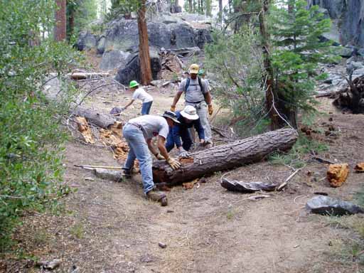 Removing a tree across the trail near the leaner. We did not have saws with us so my team decided to remove the tree by "hand".
