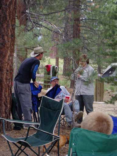 Back in base camp talking about the day's activities. Phil taking a picture.