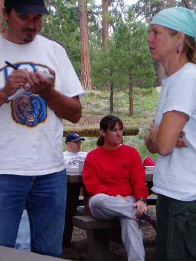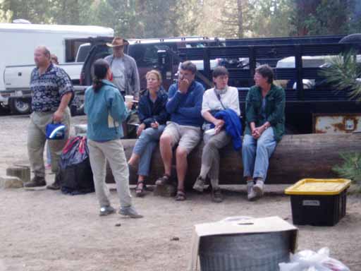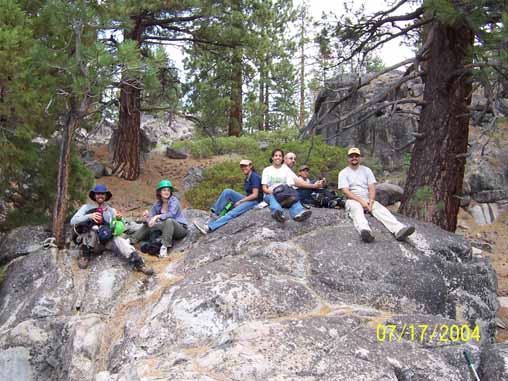 Crew during lunch at Tule Lake. Ken, Laura, Don Johnson's family of four and Adrian