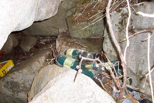 Garbage in a cave with about 50 bottles of butane we retreived.