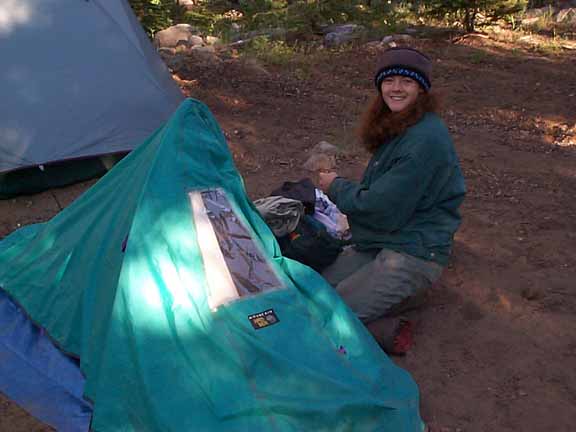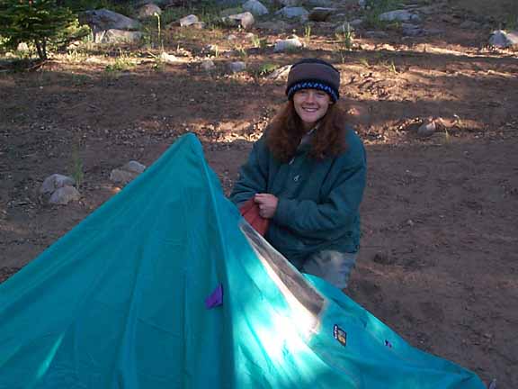 Lea and her tent.