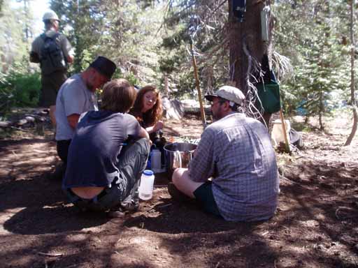 Bayard, Karl, Nate, Lea and Skip pumping water at the Trail Camp.