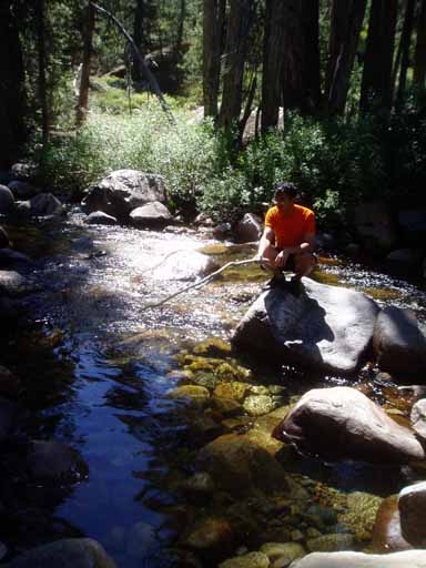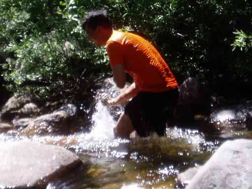 Pedro attempting to wash in cold Granite Creek.
