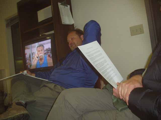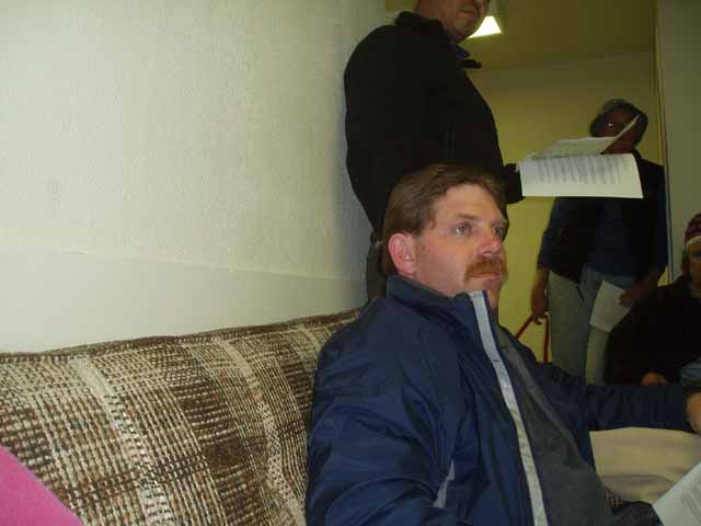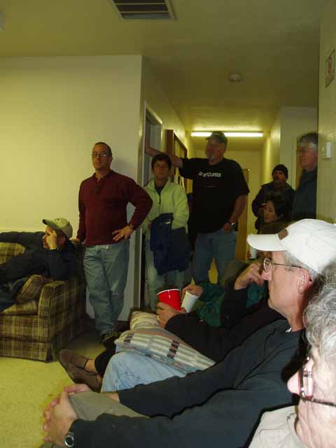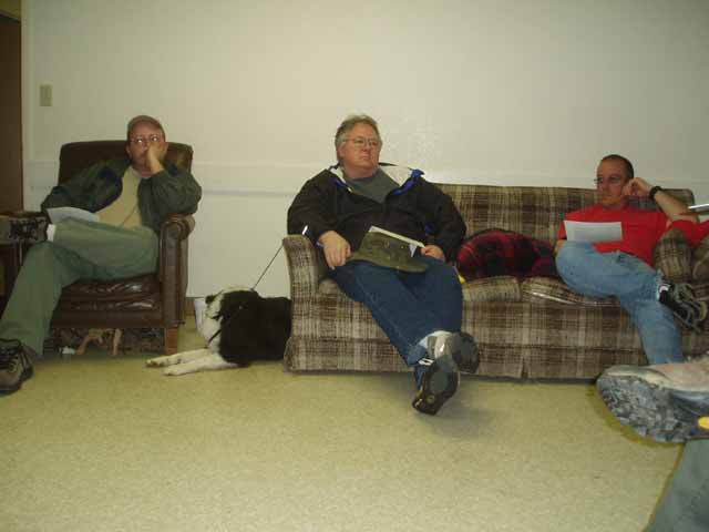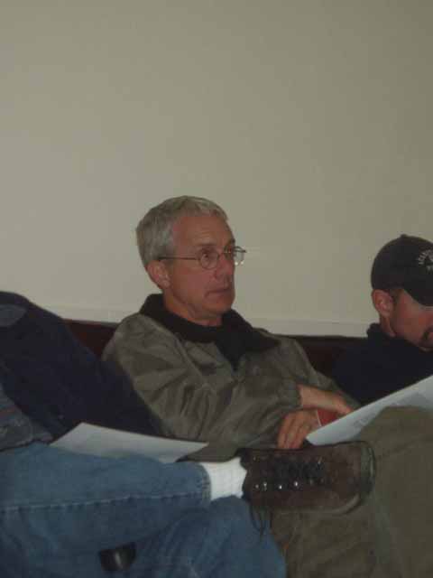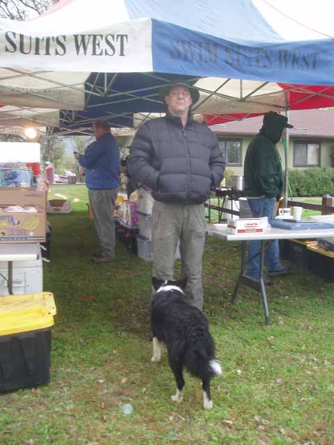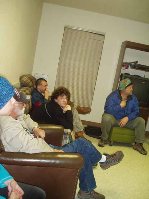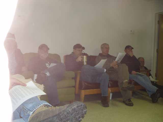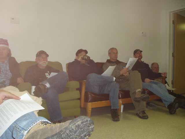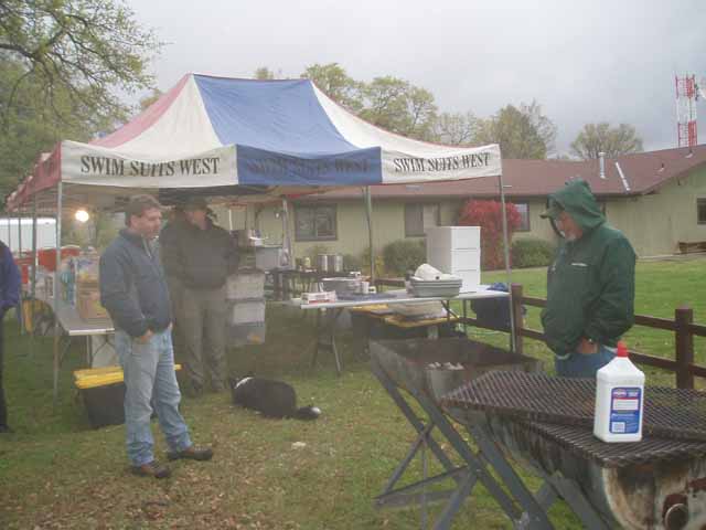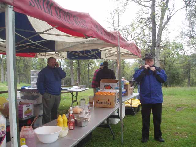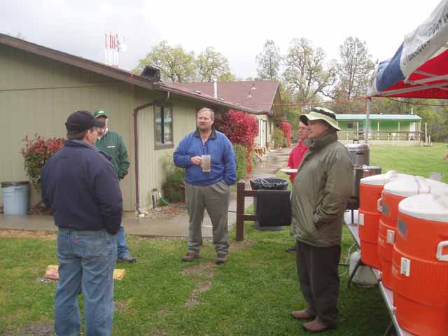 Shane on the phone, Karl buttoning up. Yes it was wet and cold. P4080004.JPG