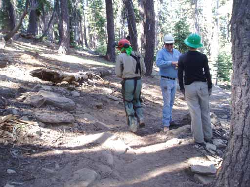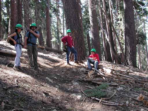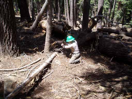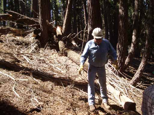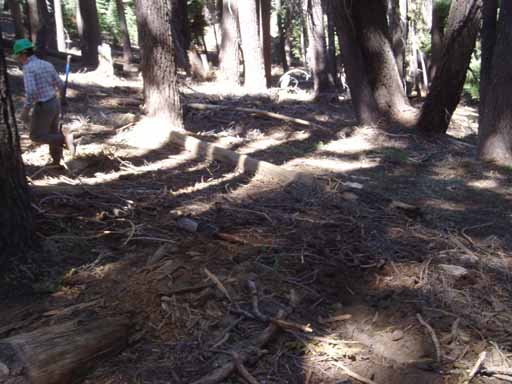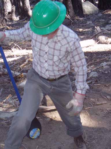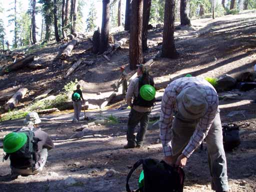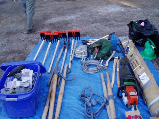 Our work tools. McLeod's on the back left, industrial strength come along in the middle back, loppers, diesel fuel for cleaning saws, rock bar and