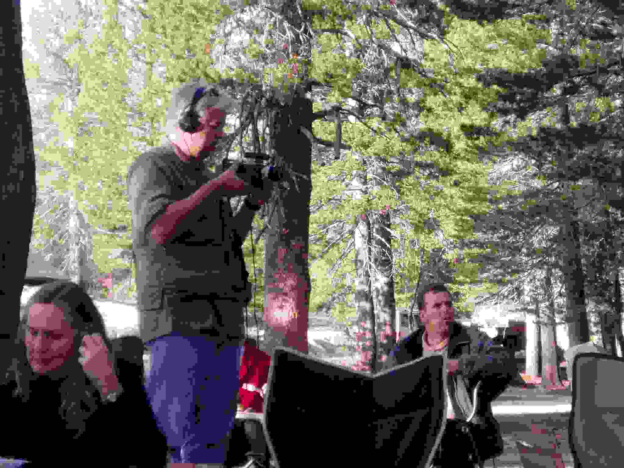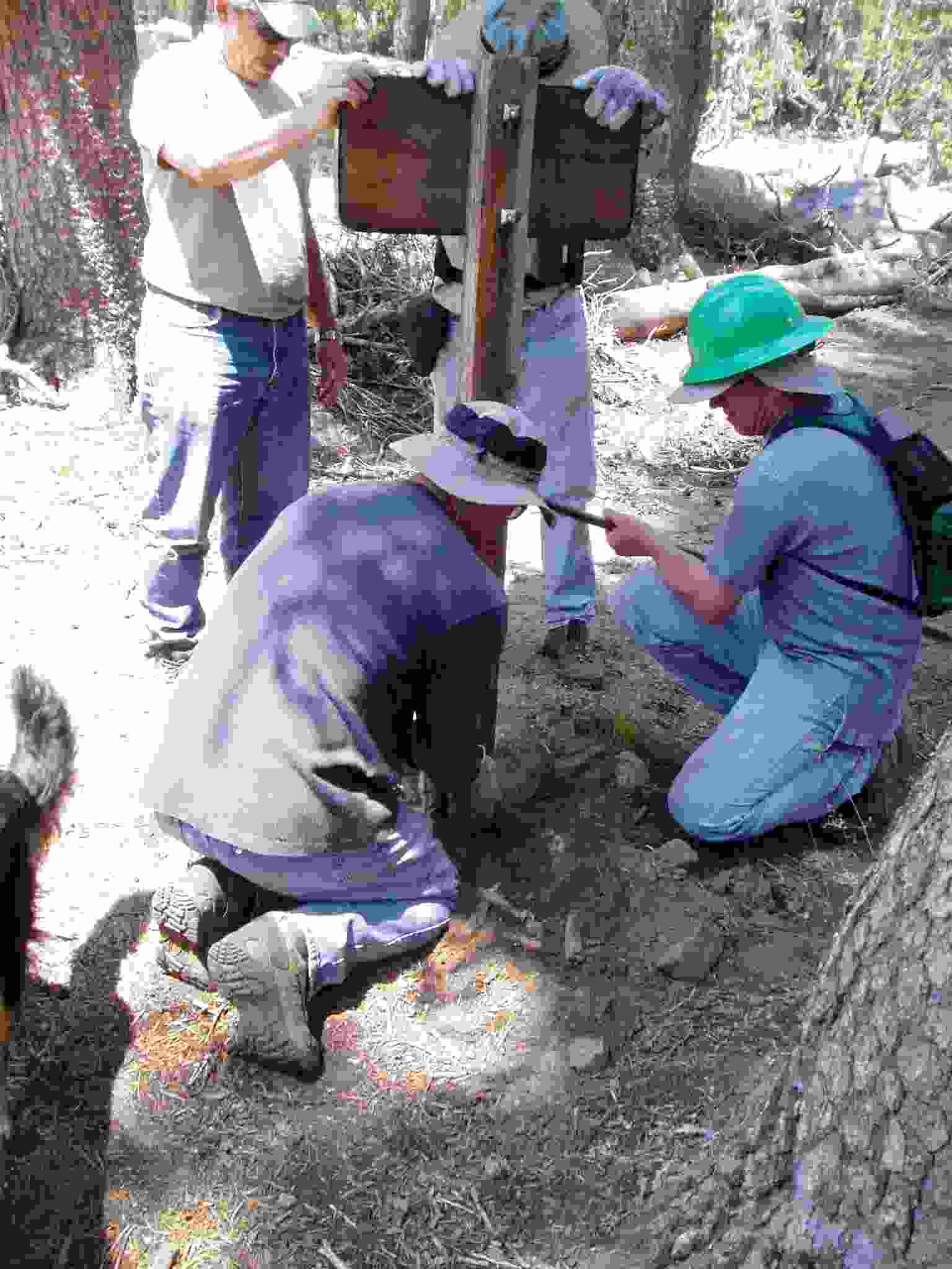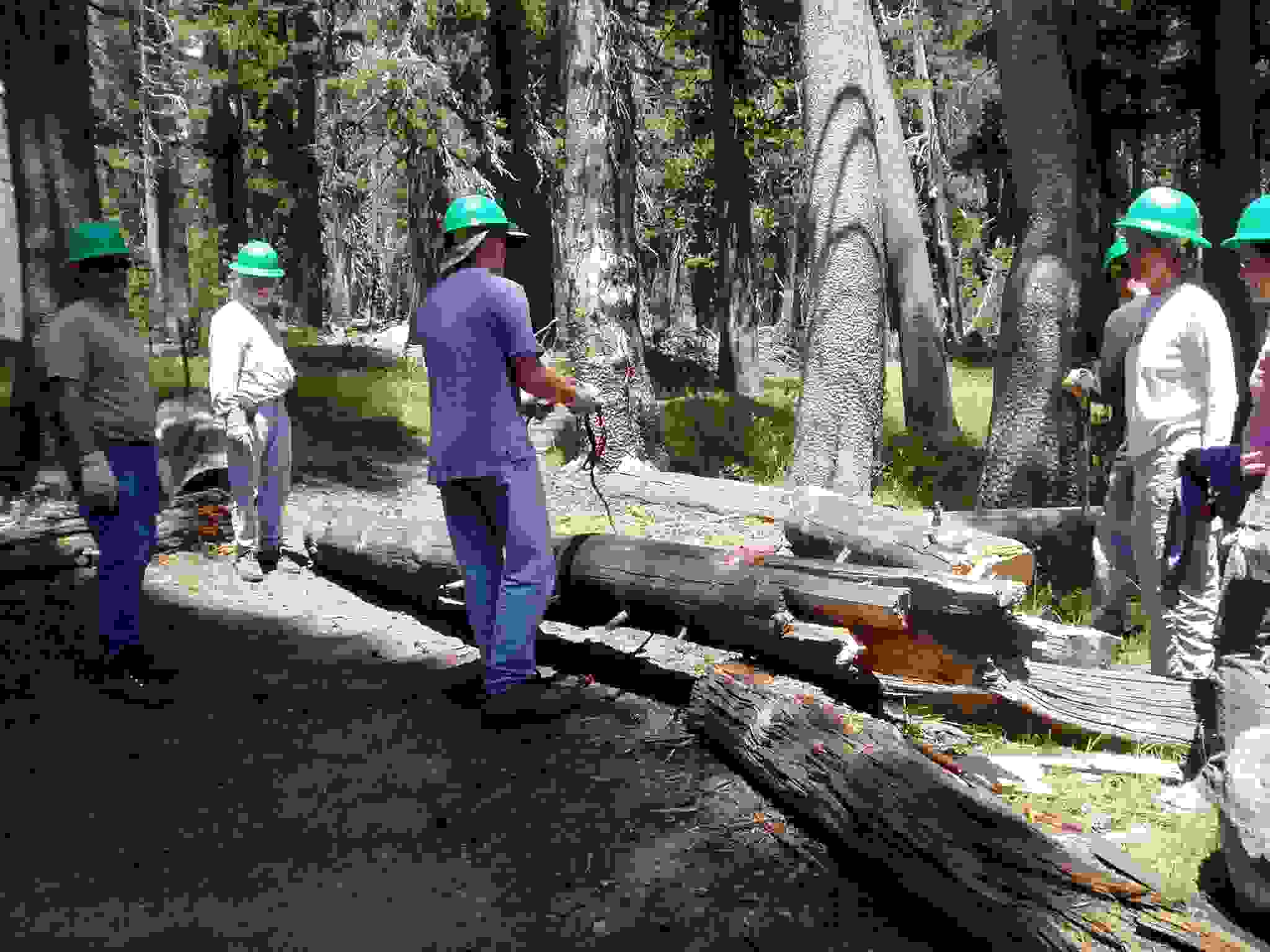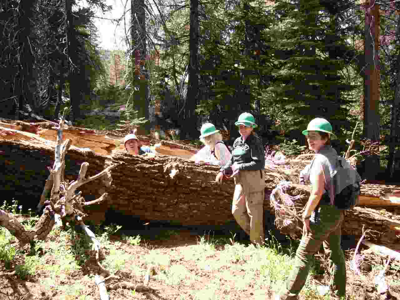 Trail crew goofing off in the meadow in front of the Snow Survey cabin.