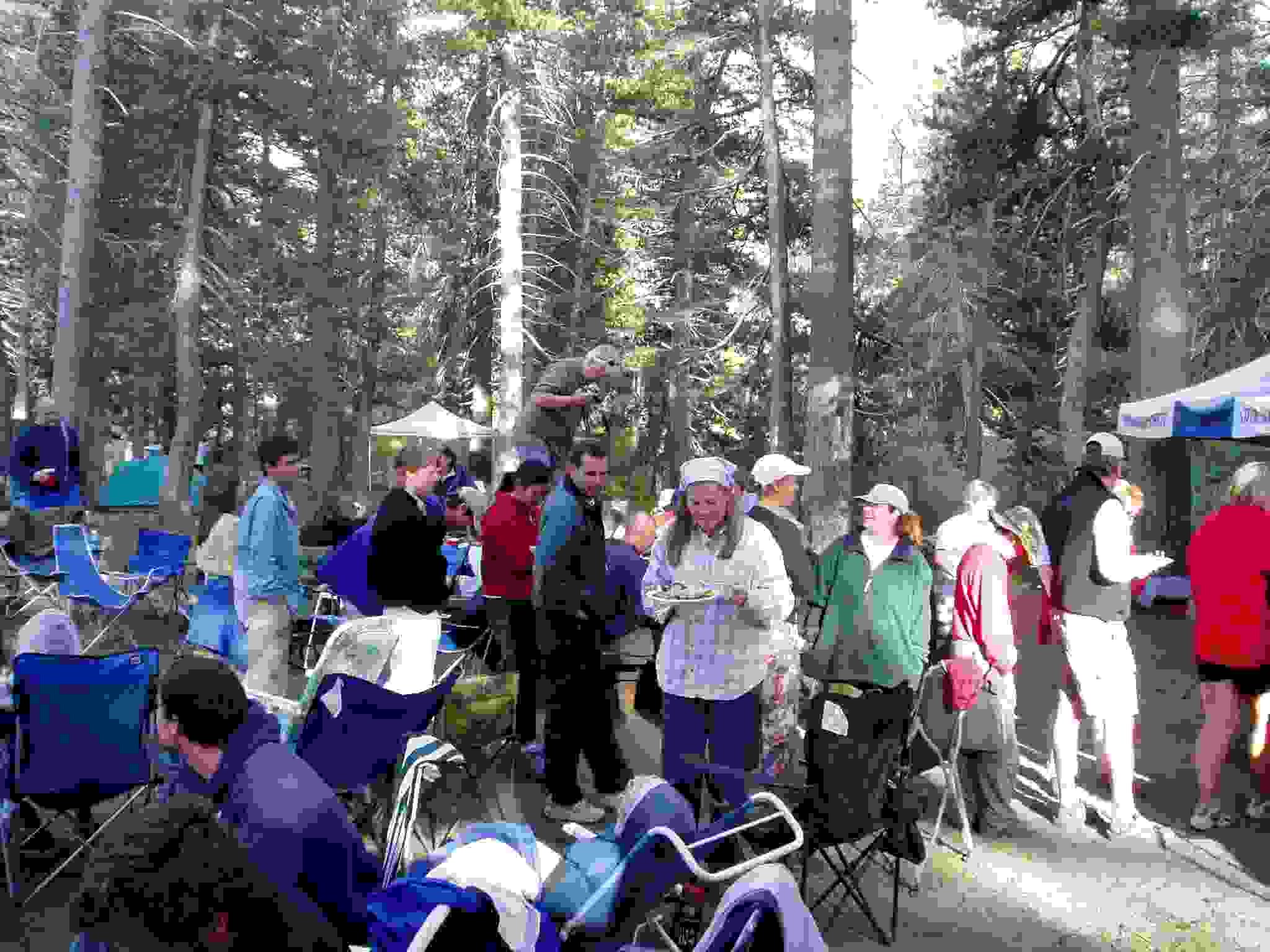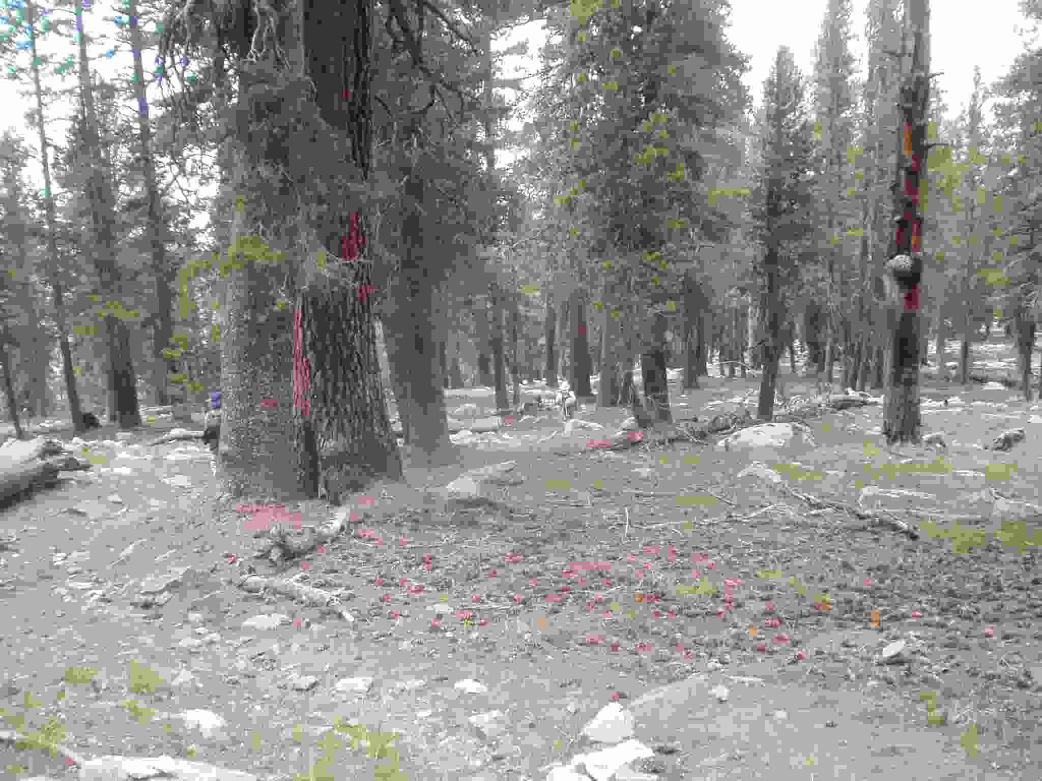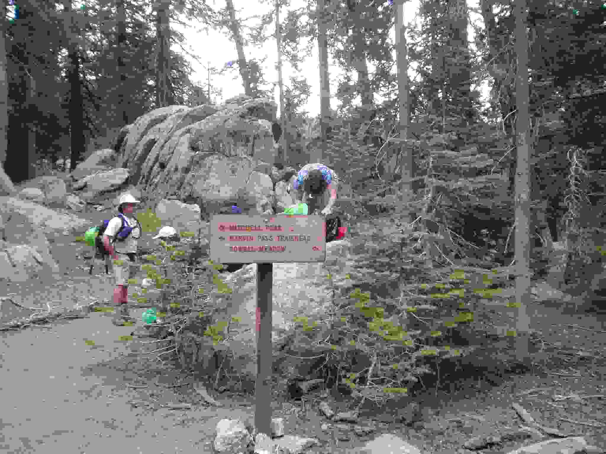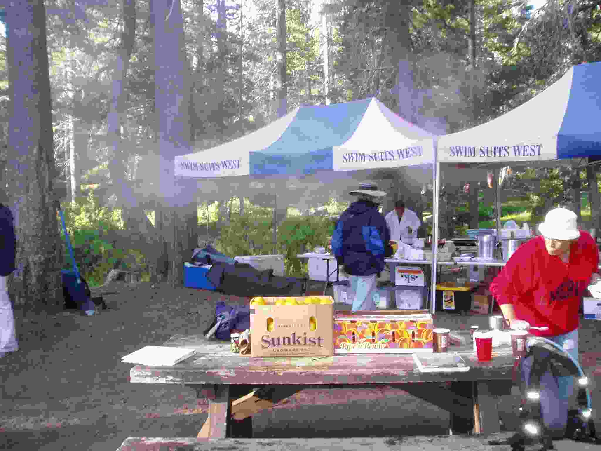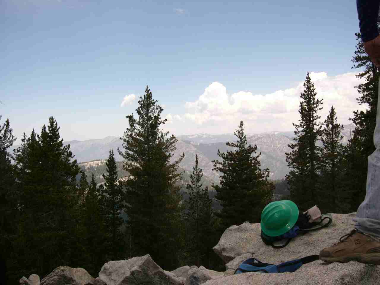 Kitchen area, first morning. (Friday) Today my task is to get a crew of all first timers and go to Rowell Meadow where the week long team has been working. They have left two "problem" trees for us, and some minor additional work. When they get packed out, they will be leaving a rock bar and two man crosscut saw behind for us.