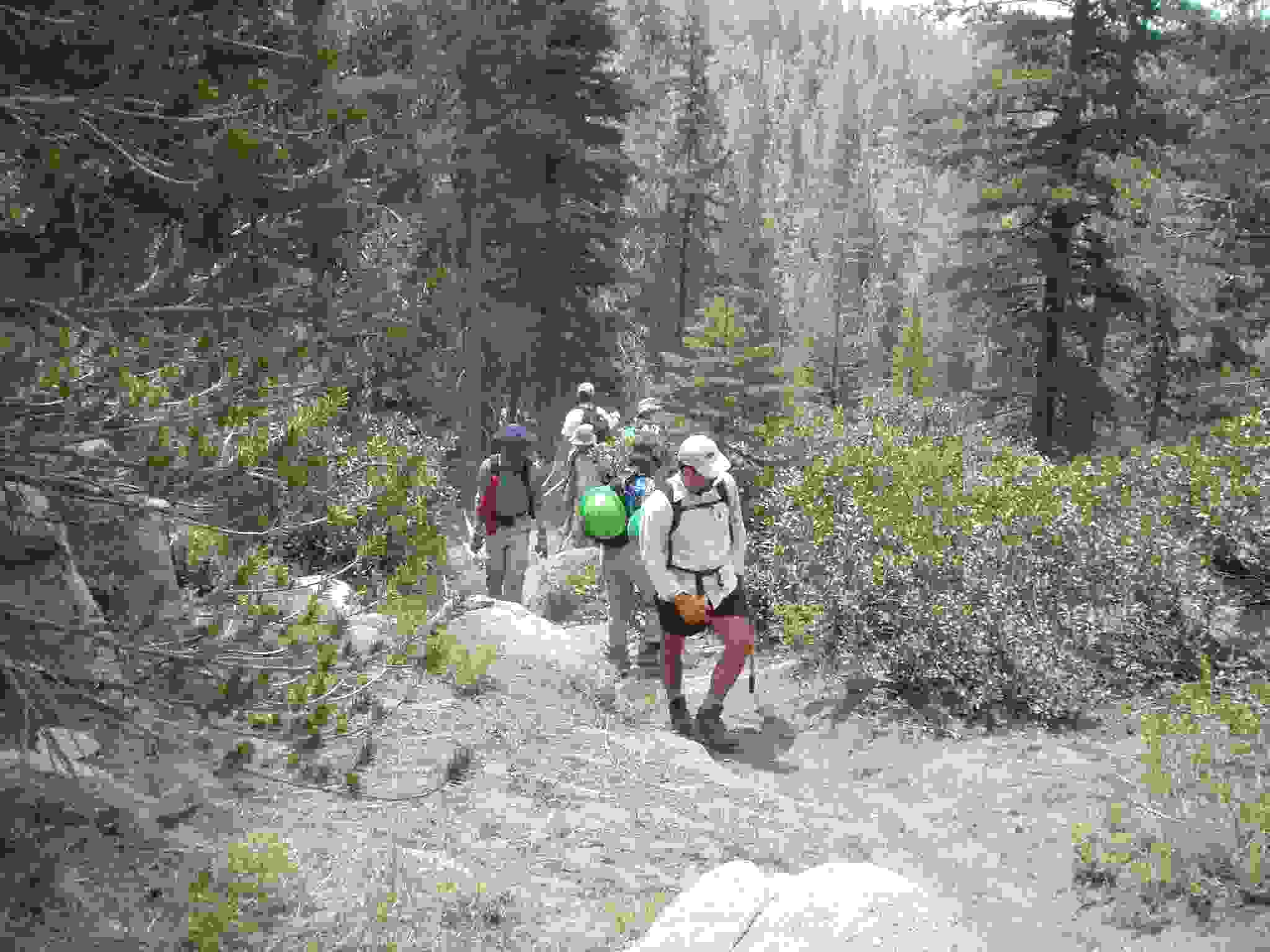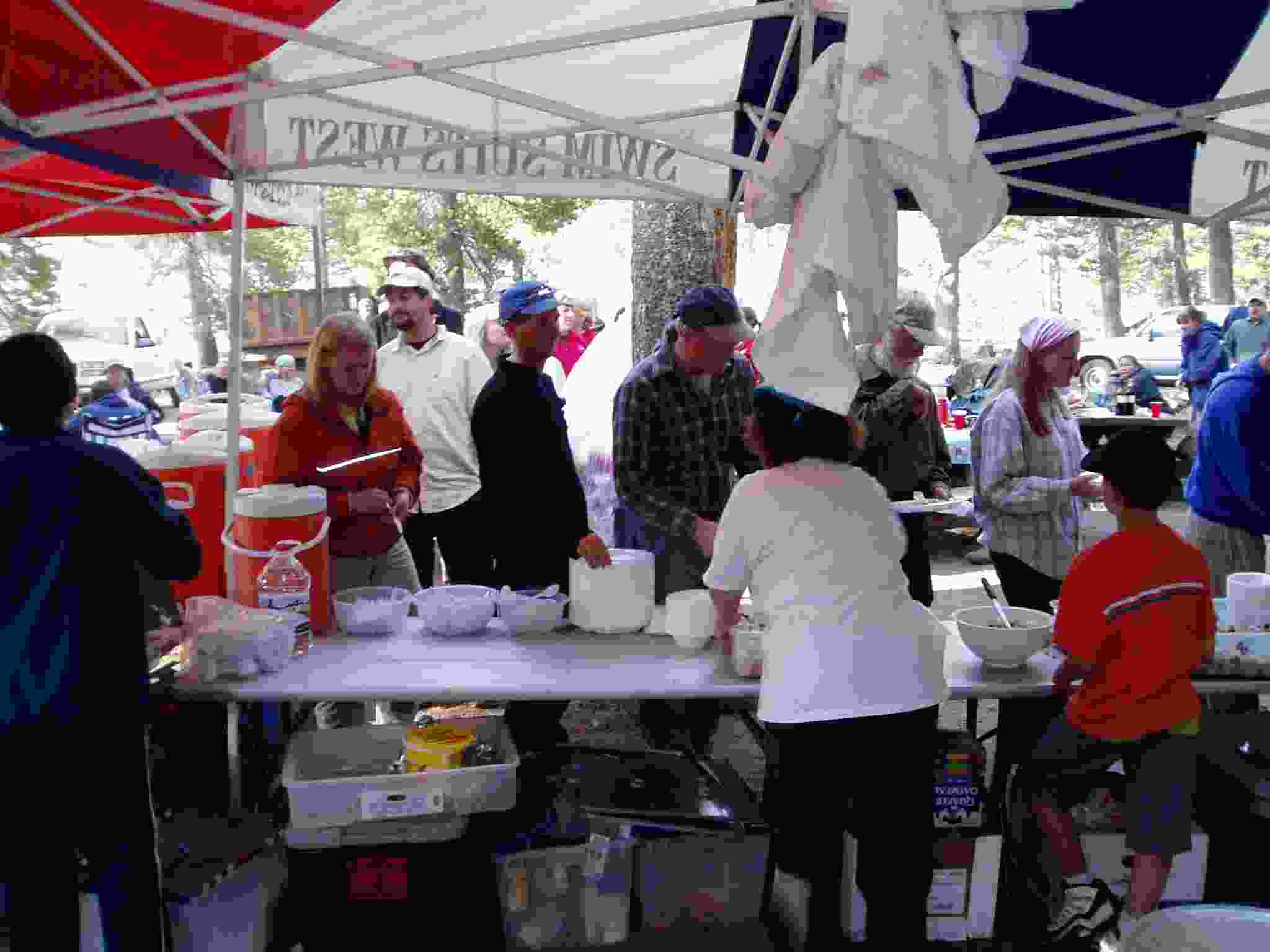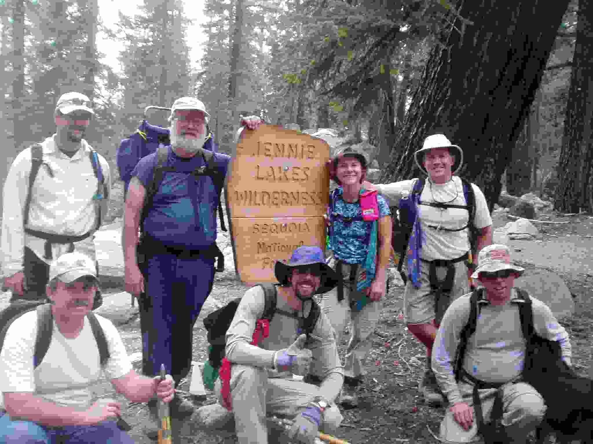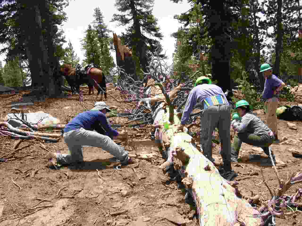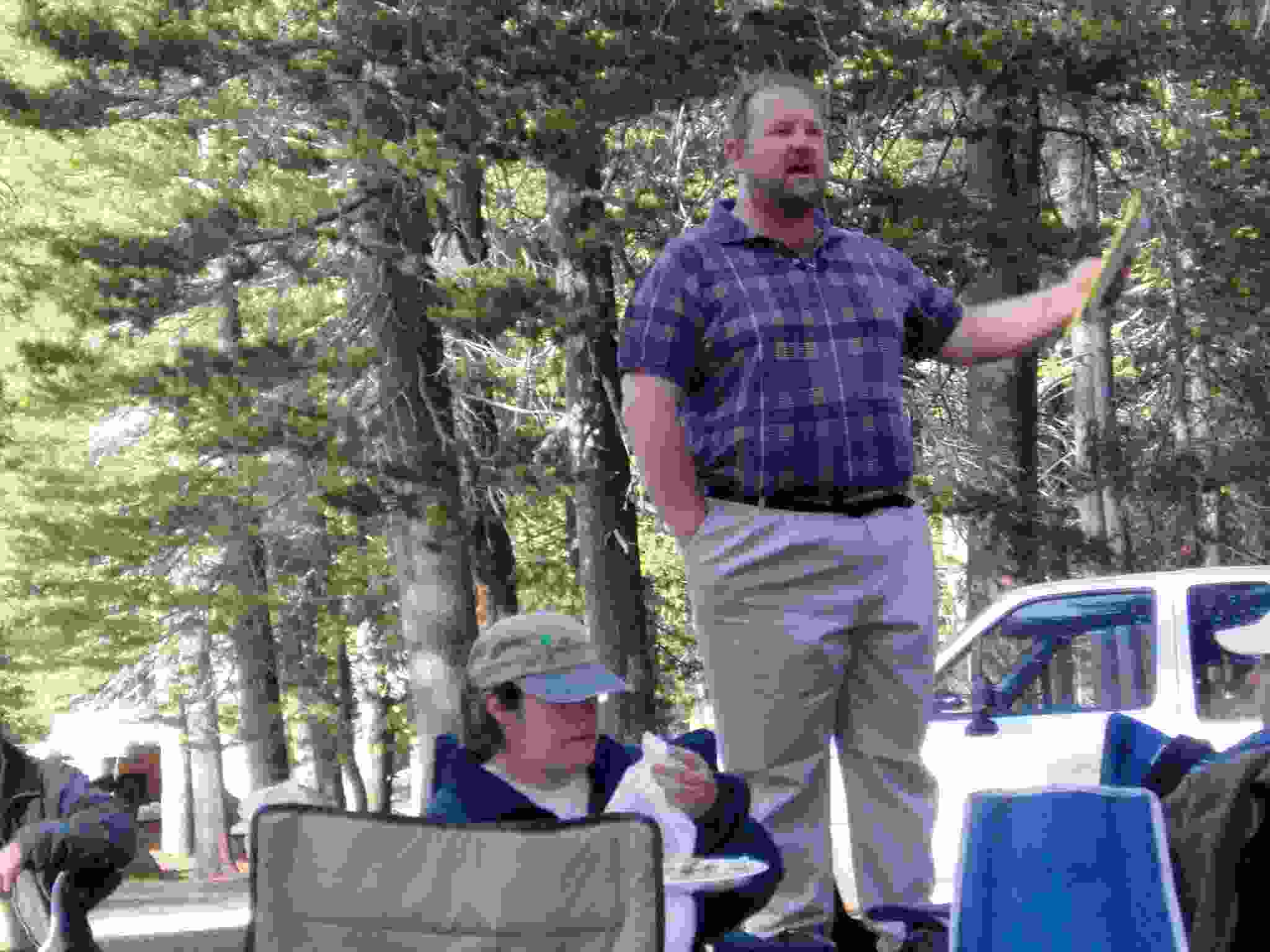 Kitchen area, first morning. (Friday) Today my task is to get a crew of all first timers and go to Rowell Meadow where the week long team has been working. They have left two "problem" trees for us, and some minor additional work. When they get packed out, they will be leaving a rock bar and two man crosscut saw behind for us.