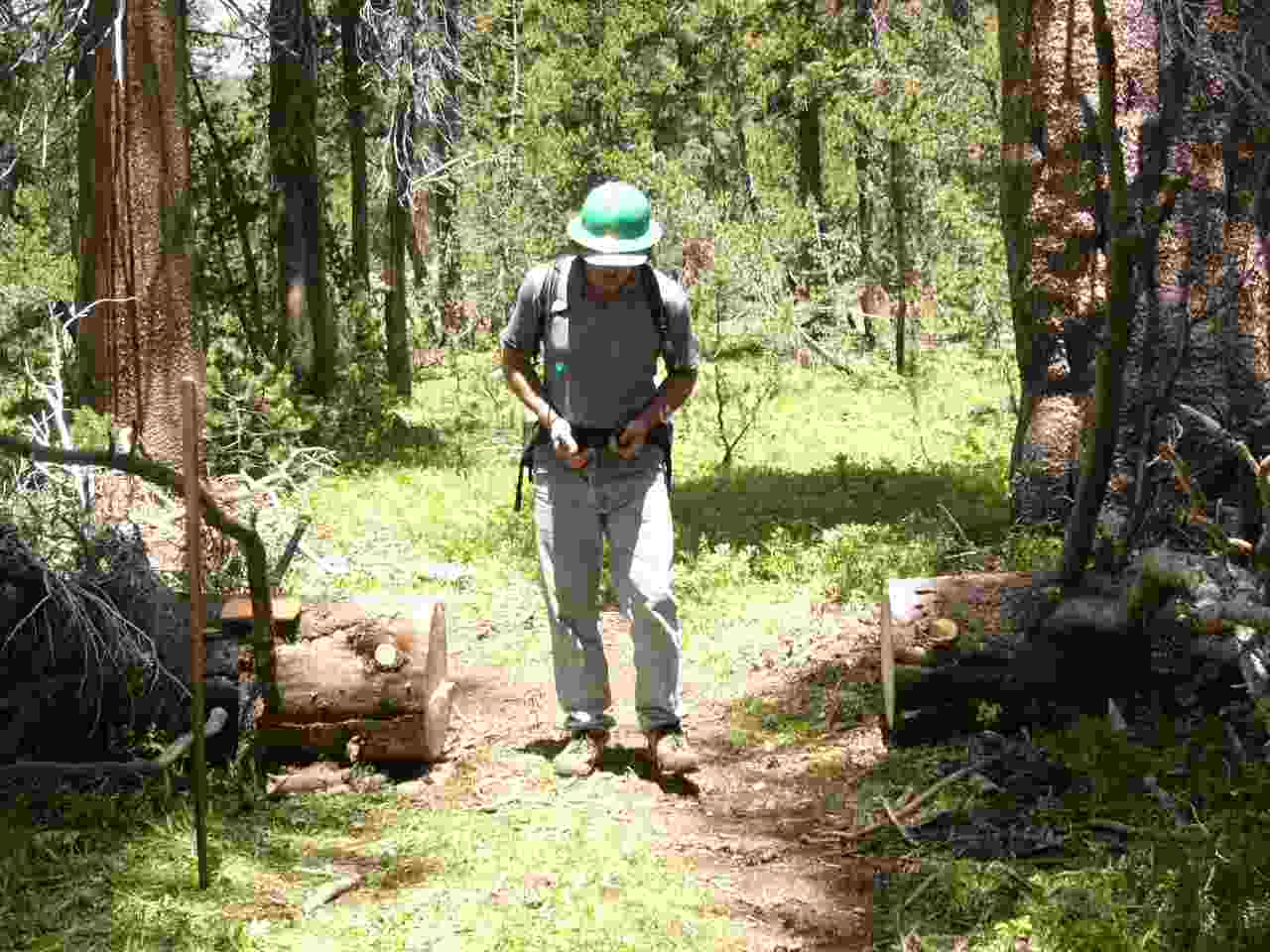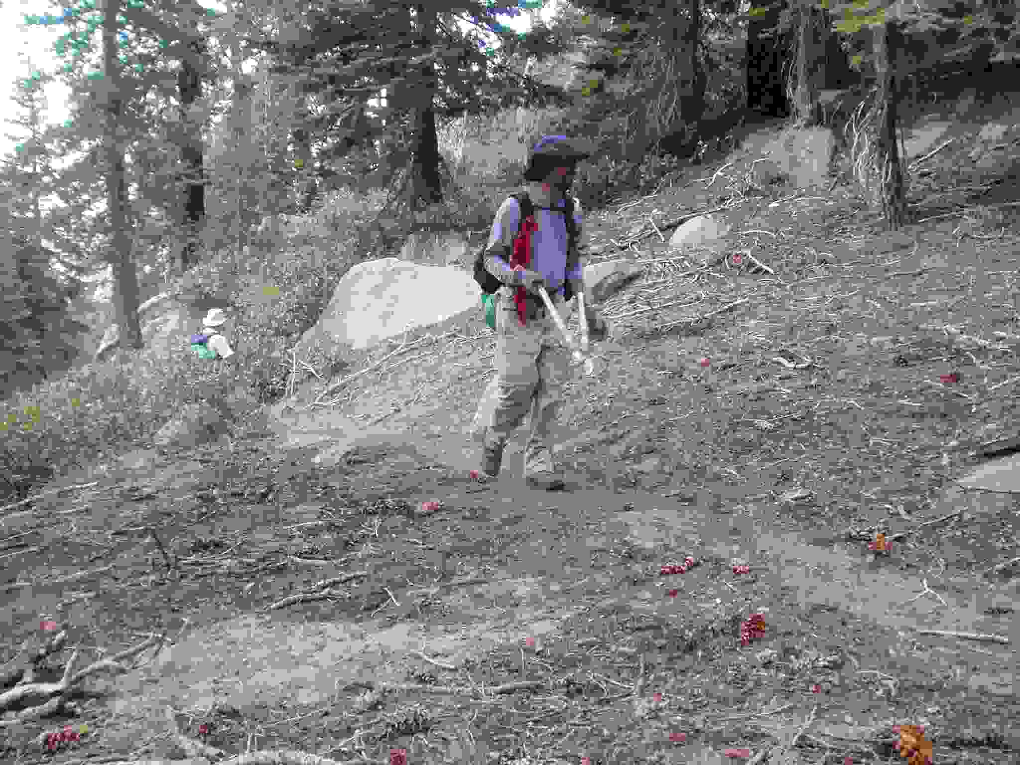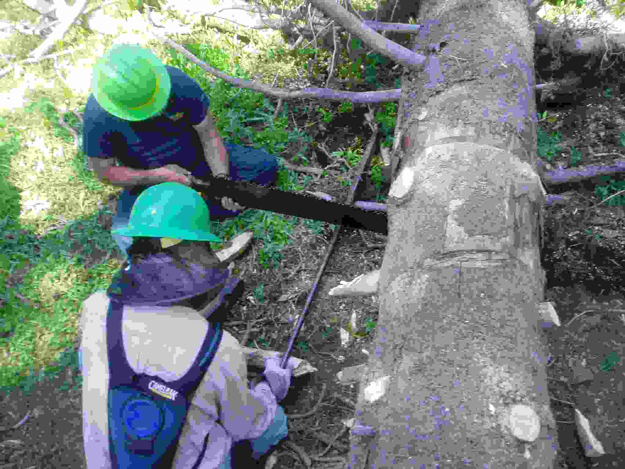 More of me cutting. I soon stopped, as Shane thinks that Crew Leaders should lead (keep every one safe) and not do direct trail work.