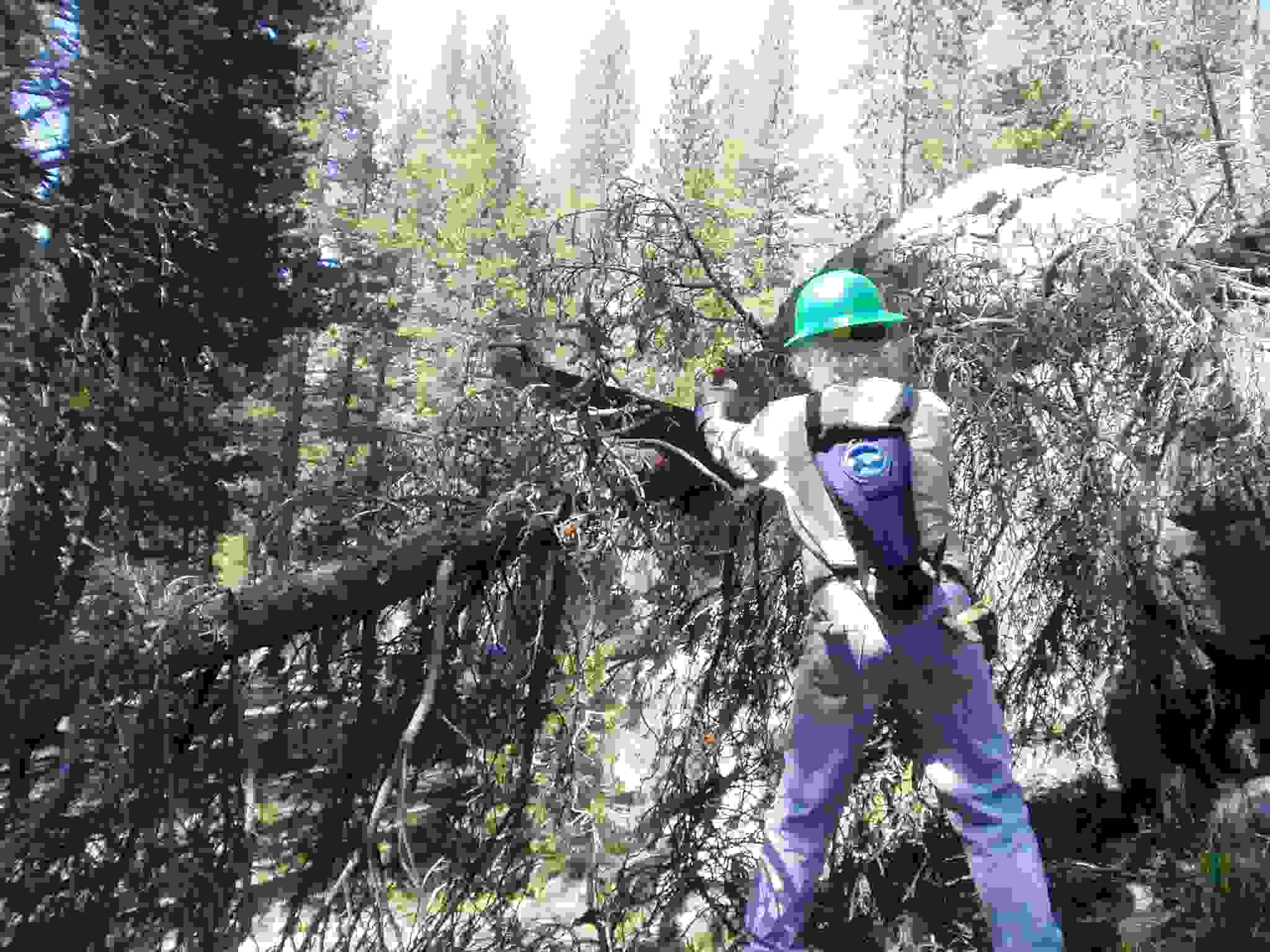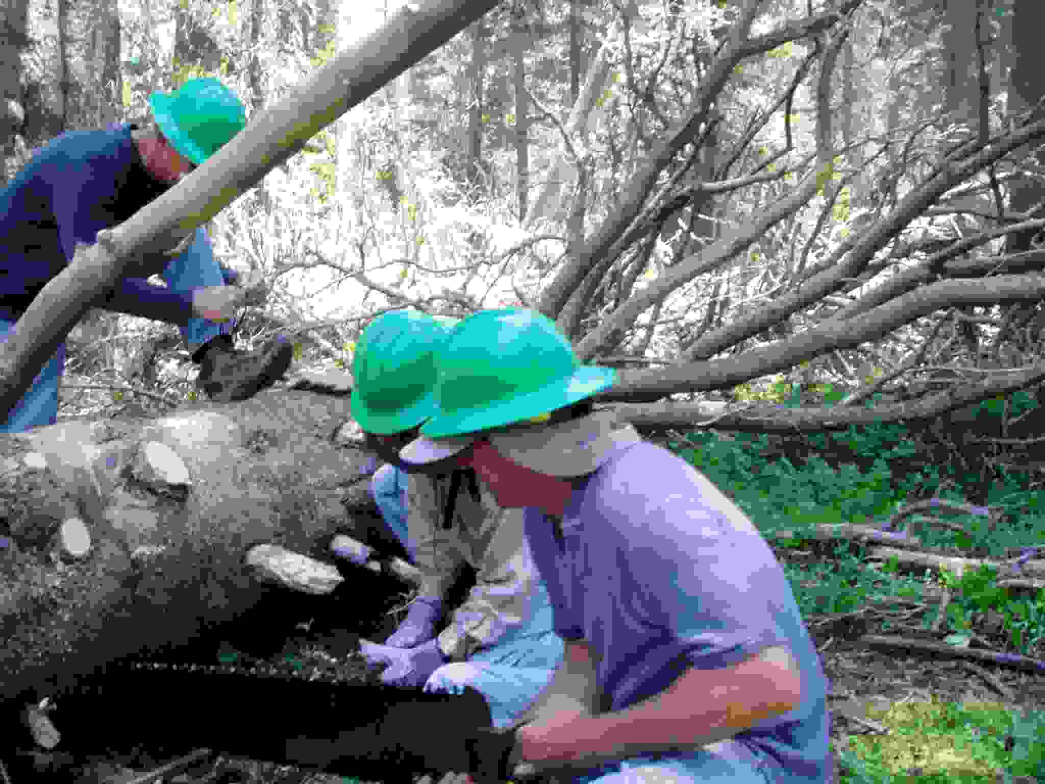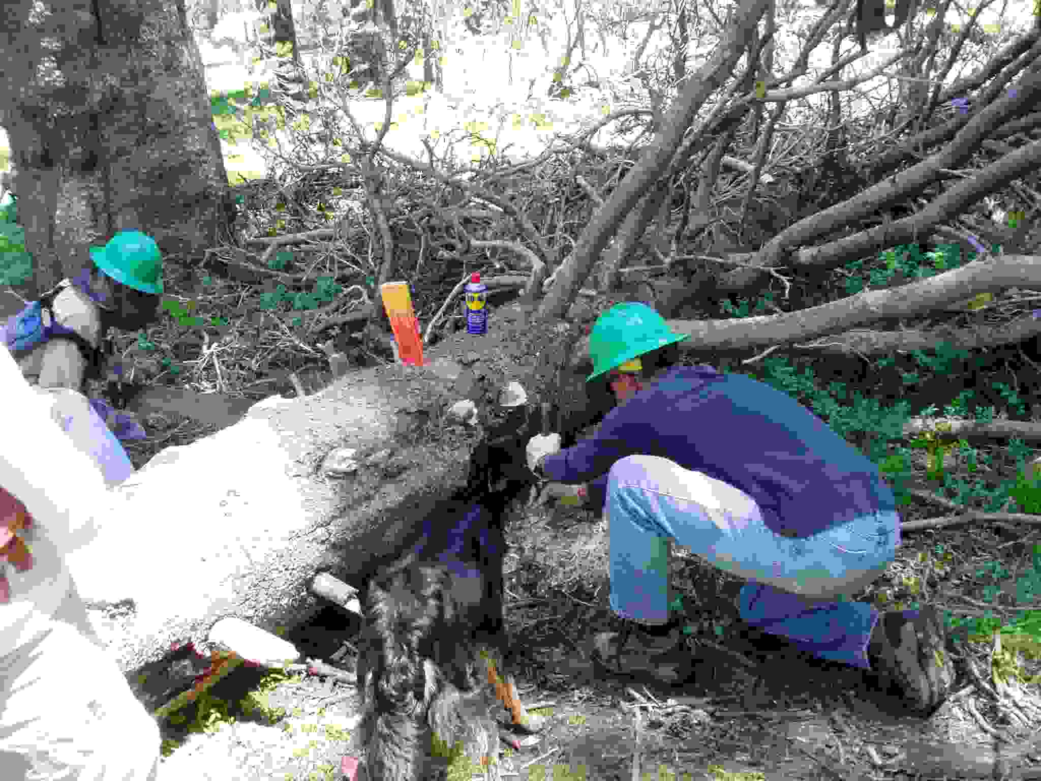 More of me cutting. I soon stopped, as Shane thinks that Crew Leaders should lead (keep every one safe) and not do direct trail work.