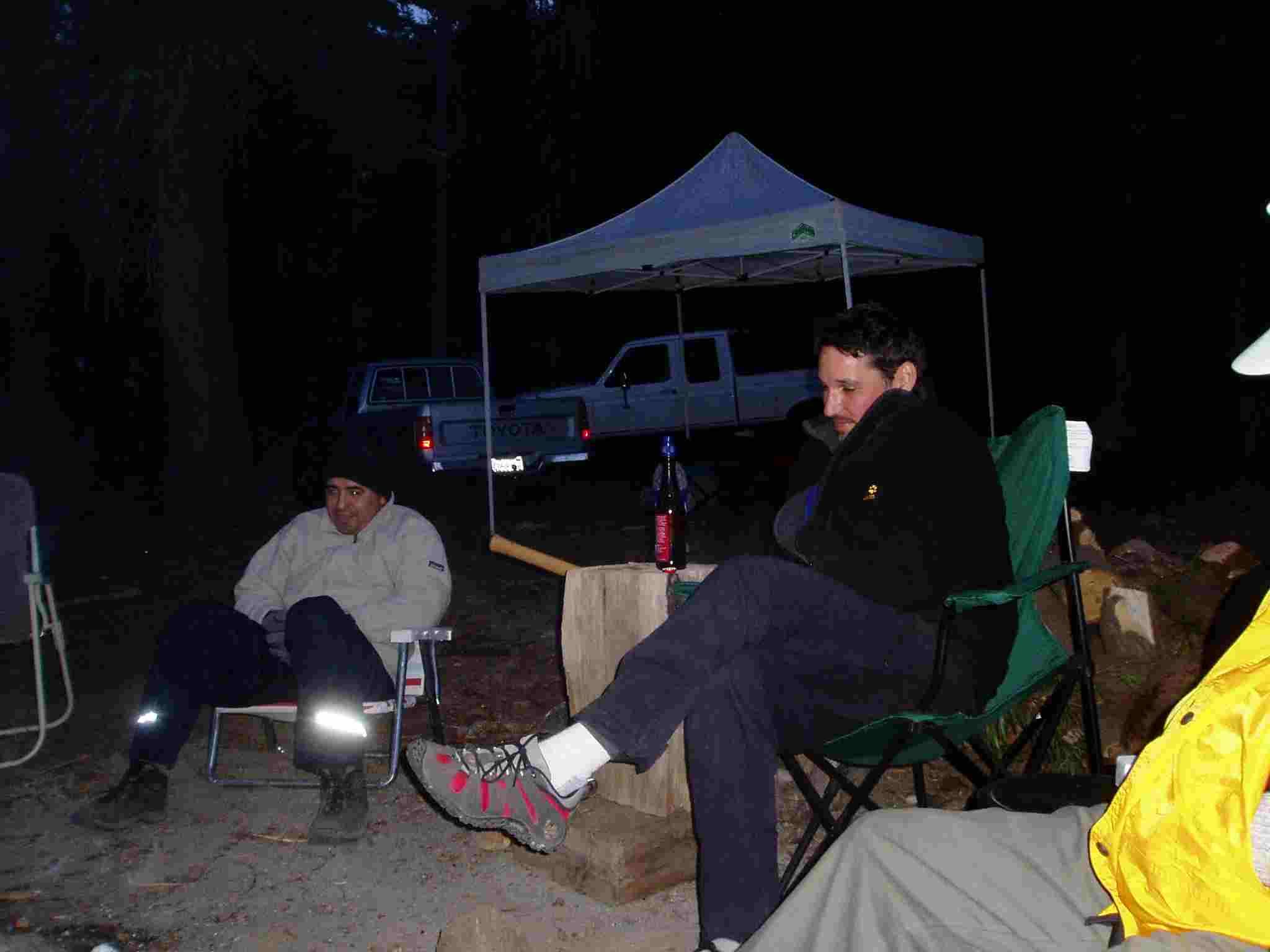 Tony a bit back from the fire and ? (my "tent" in the background).