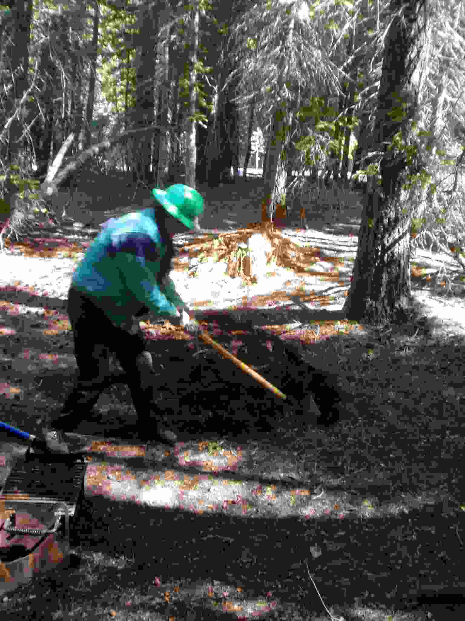Keith using a McLeod to get a bear box position ready.
