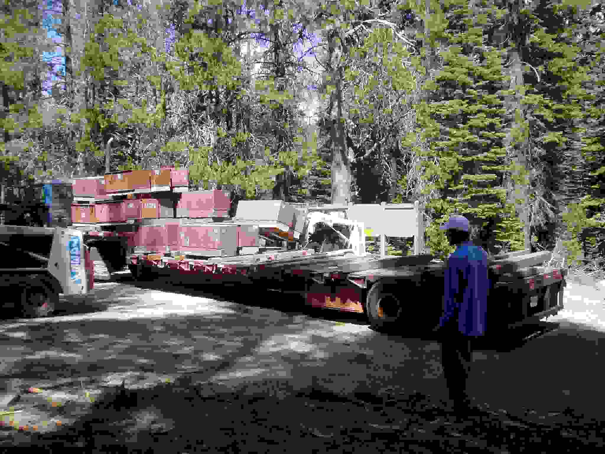 Unloading bear boxes at the camp area.