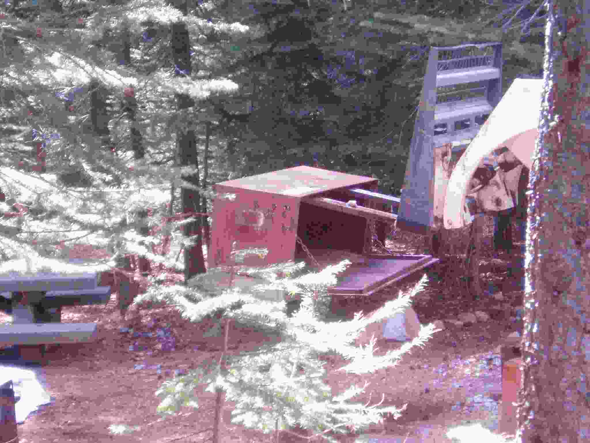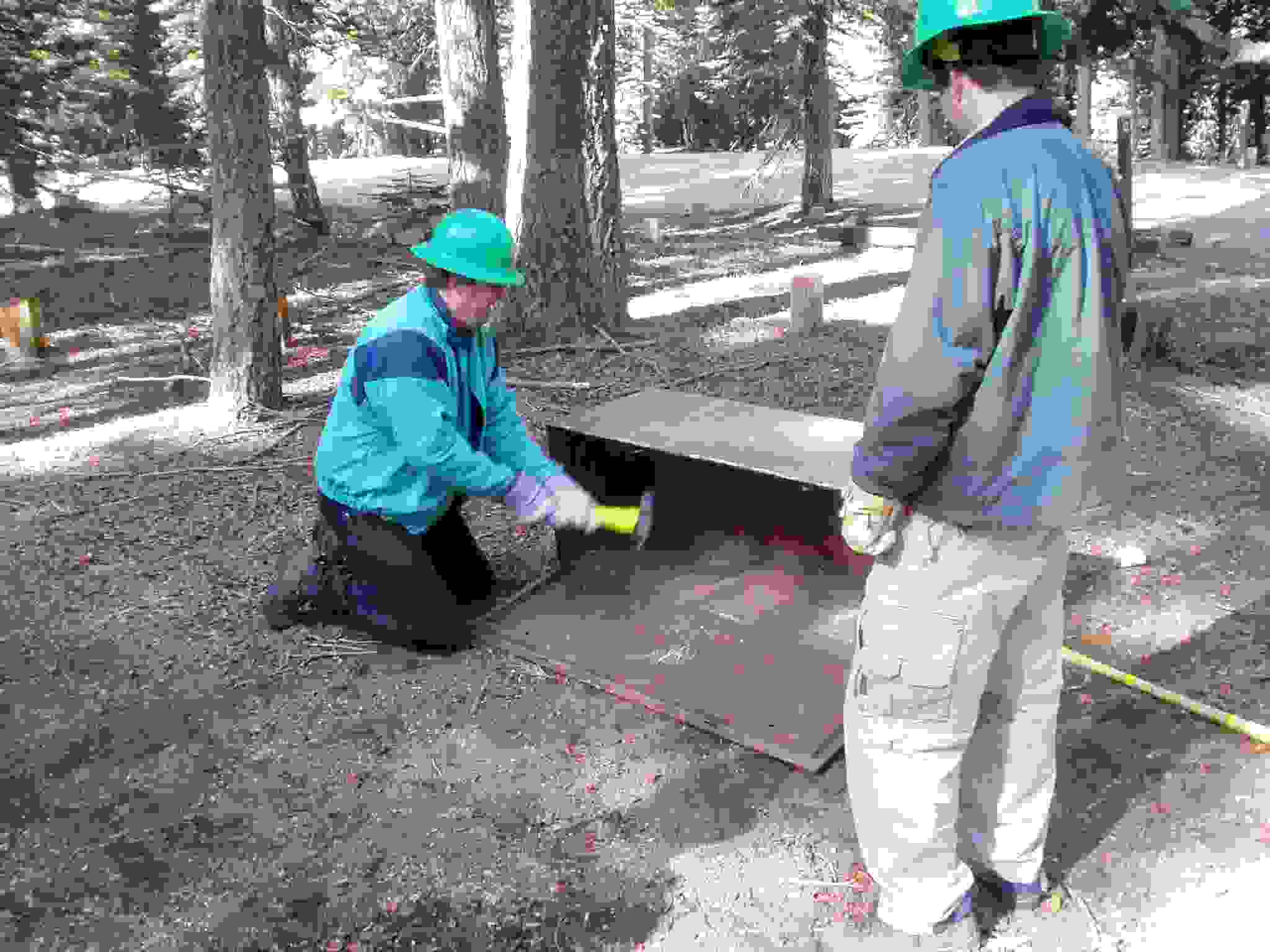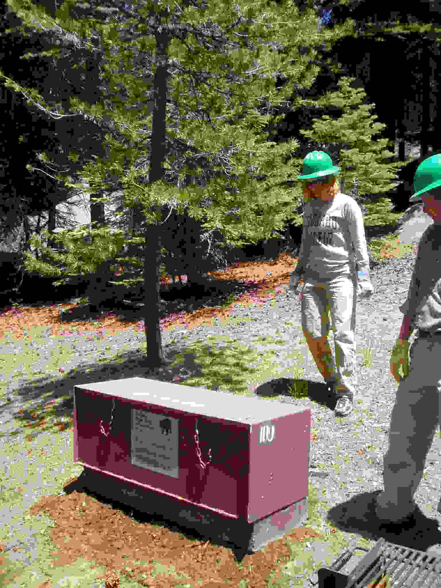 Bear box installed, Lisa and ? checking its placement.
