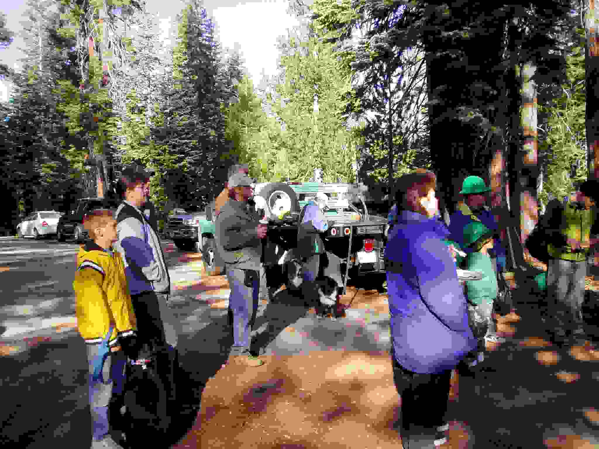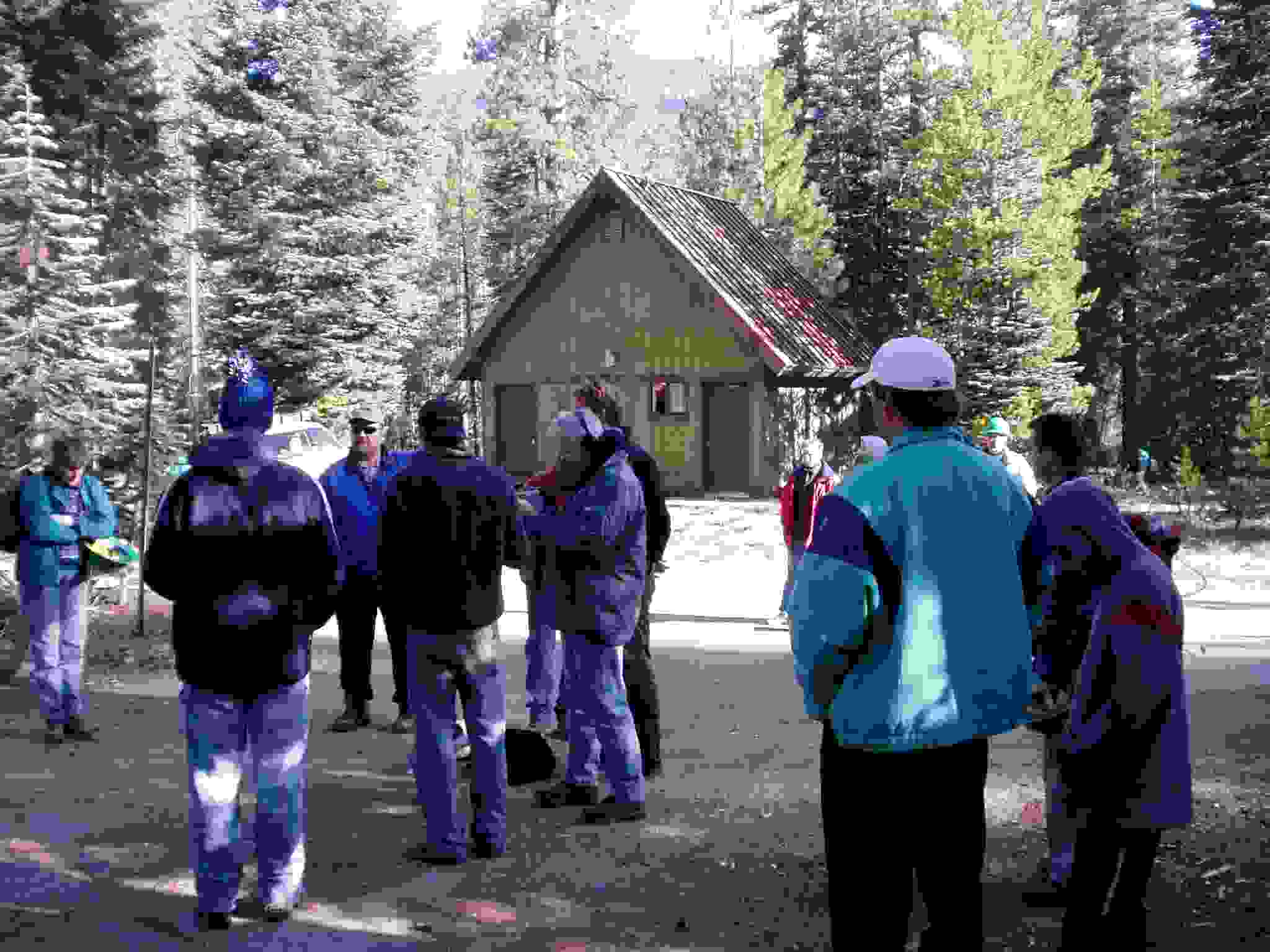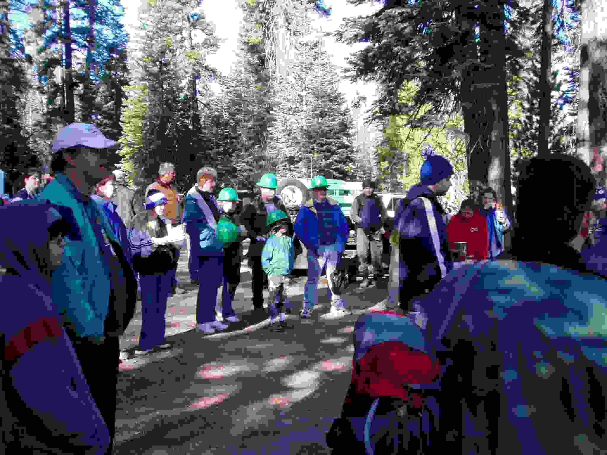 Bear box installed, Lisa and ? checking its placement.