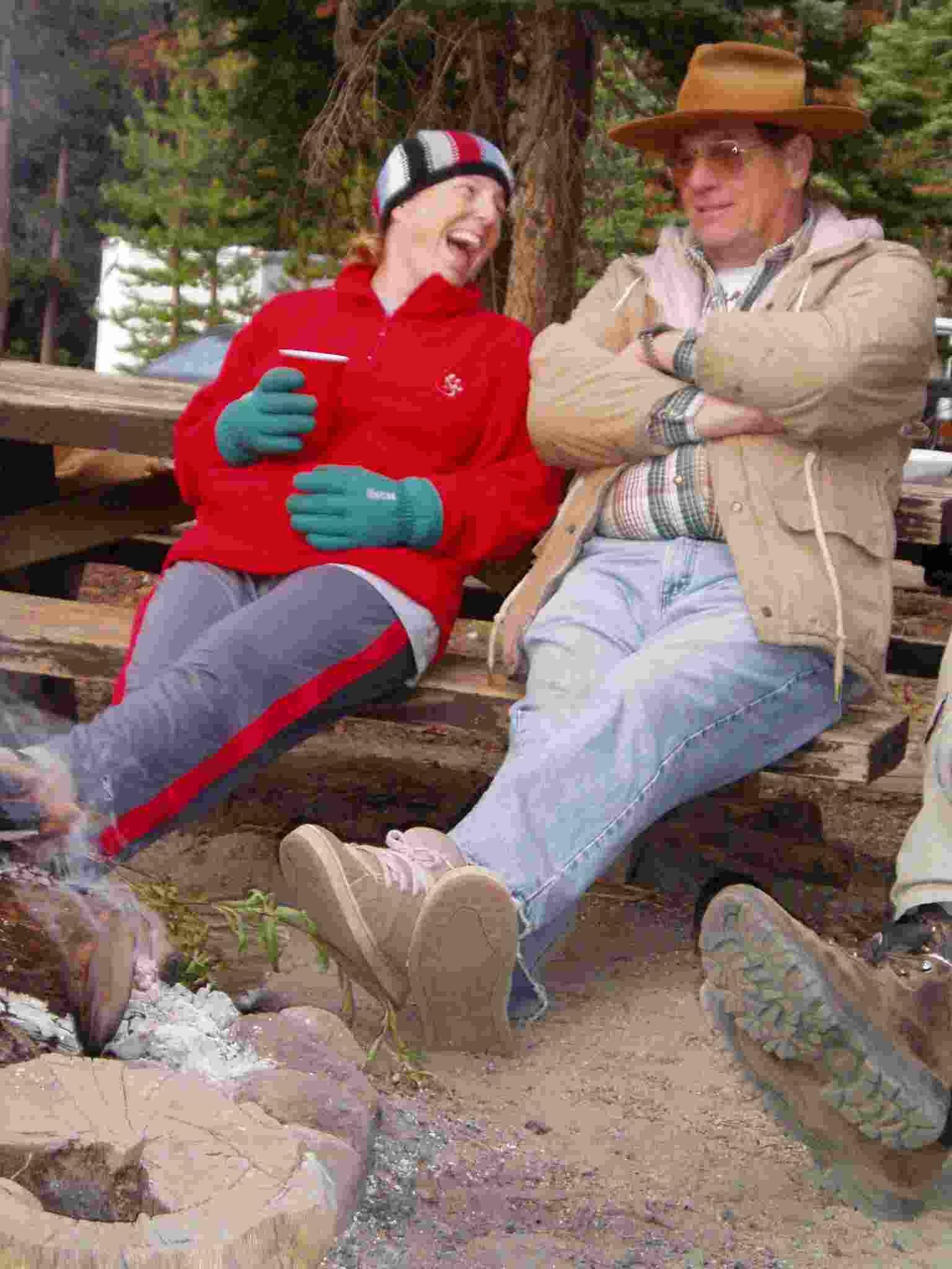 Phil and Sherri near fire. It was cold up there. It got down to 22° F at night.