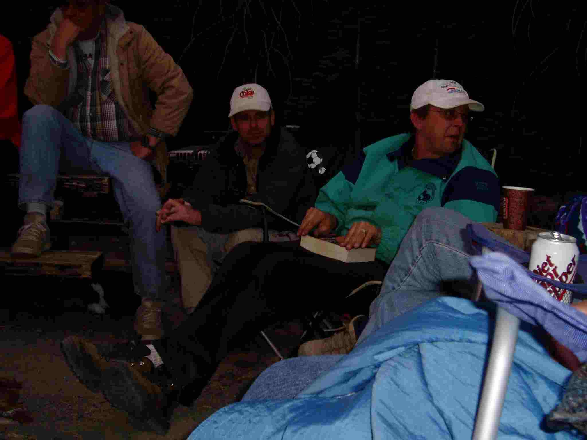 Mike and ? around the camp fire.