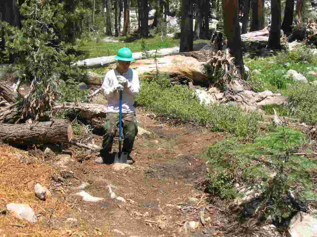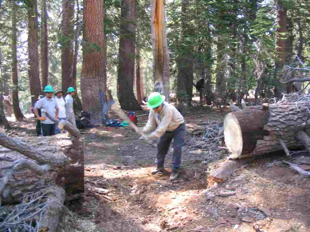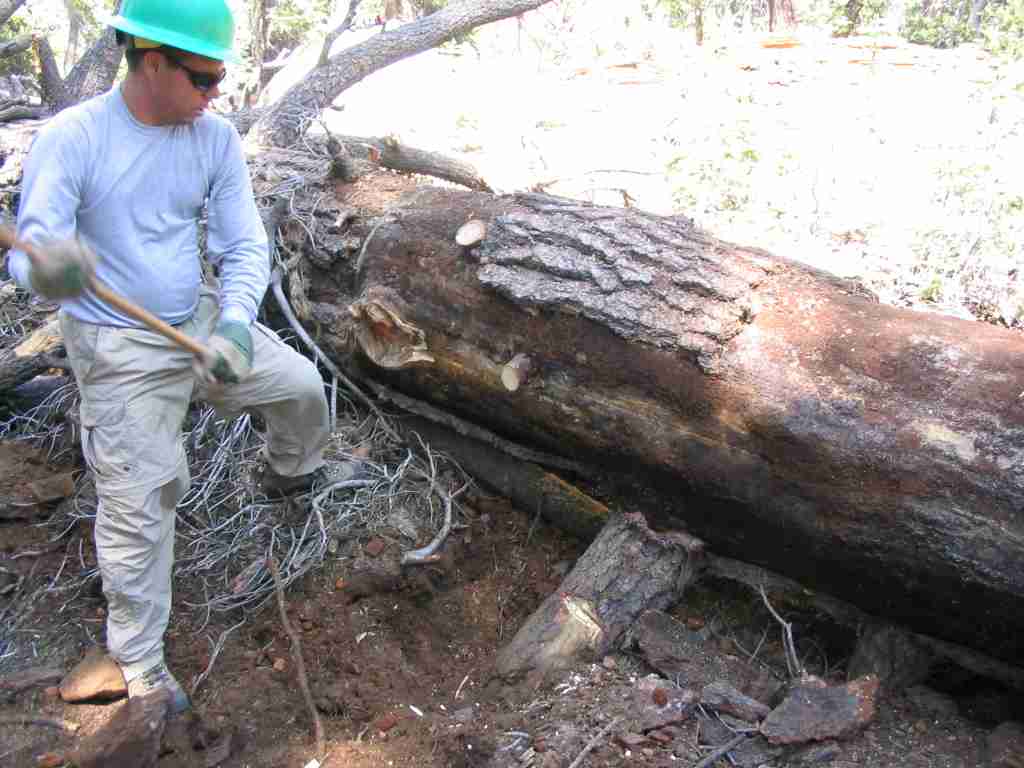 Using a Pulaski to chop out the staube.