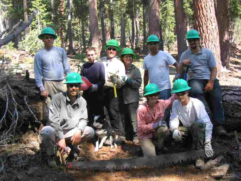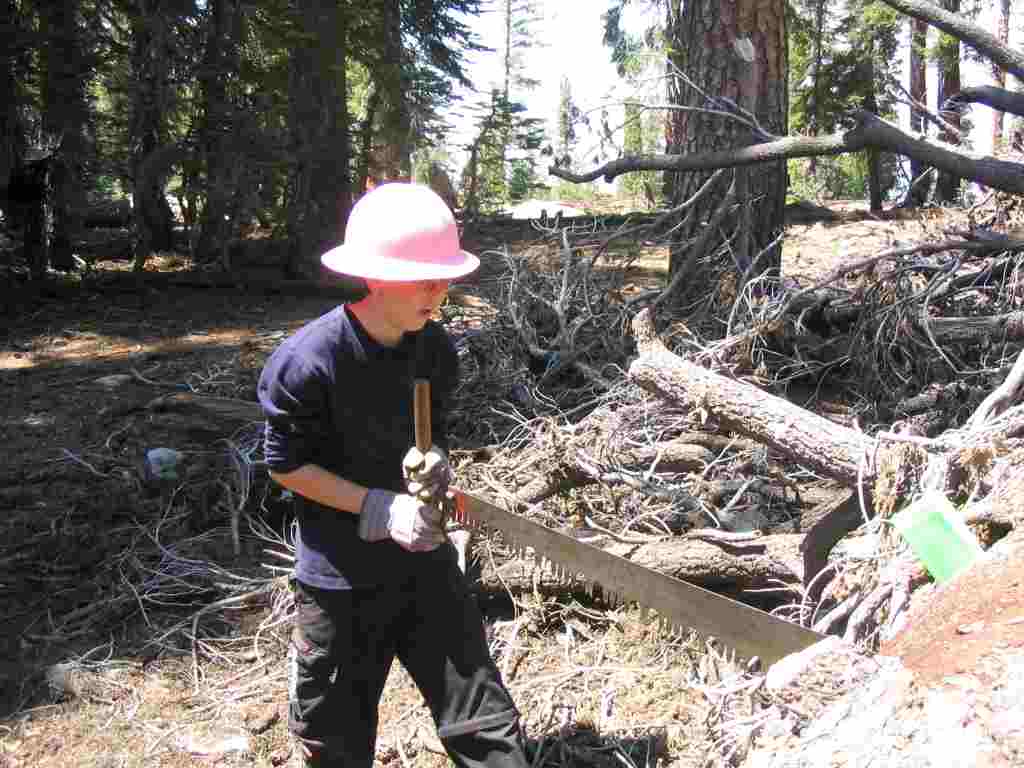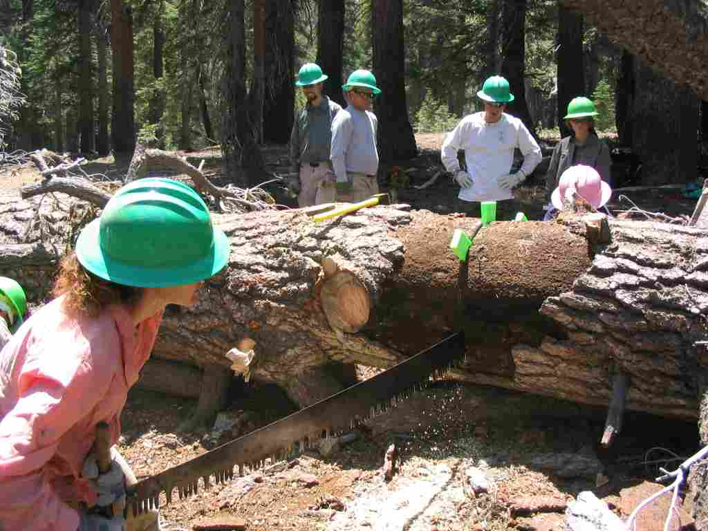 Leah's team entering the wilderness area with two man crosscut saw.