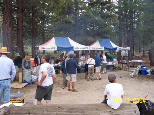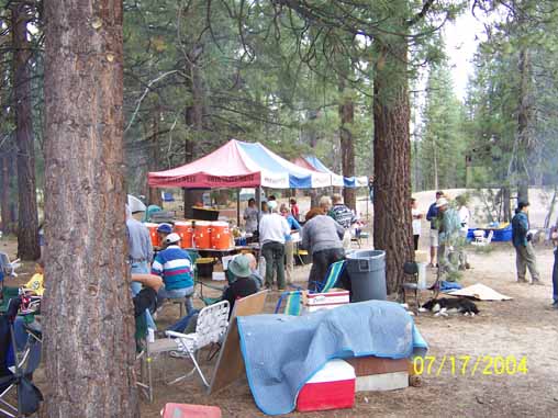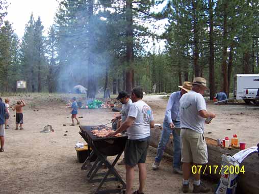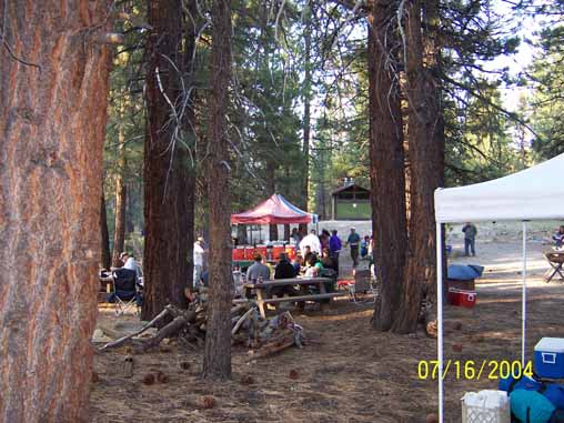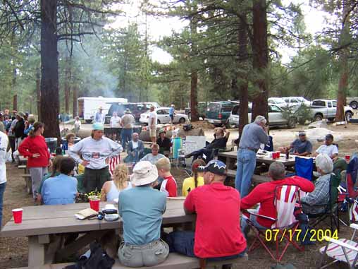 Crew during lunch at Tule Lake. Ken, Jaura, Don Johnson's family of four and Adrian