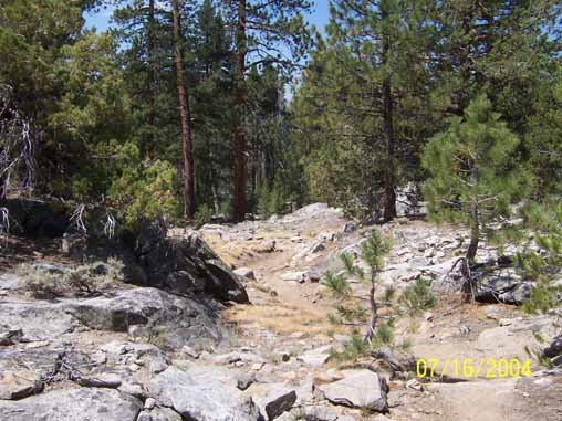 "Brushing" on the trail above Mono Hot Springs