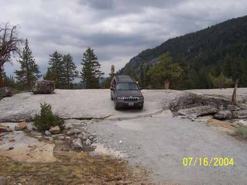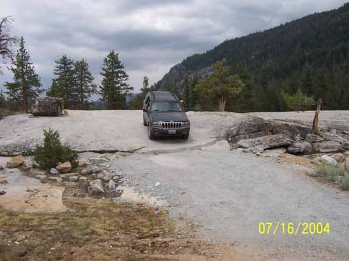 Adrian's Jeep leaving from the parking area of Bear Creek