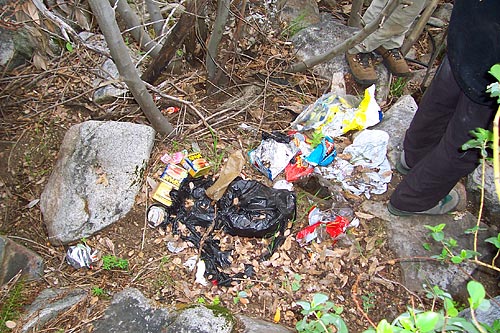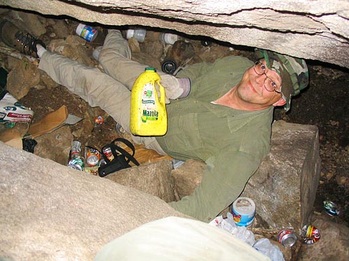Garbage in a cave with about 50 bottles of butane we retreived.